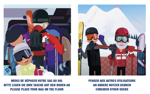 Dans les télécabines et téléphériques, pensez à descendre votre sac à dos : cela facilite l’installation de tous et améliore le confort et la sécurité à bord.